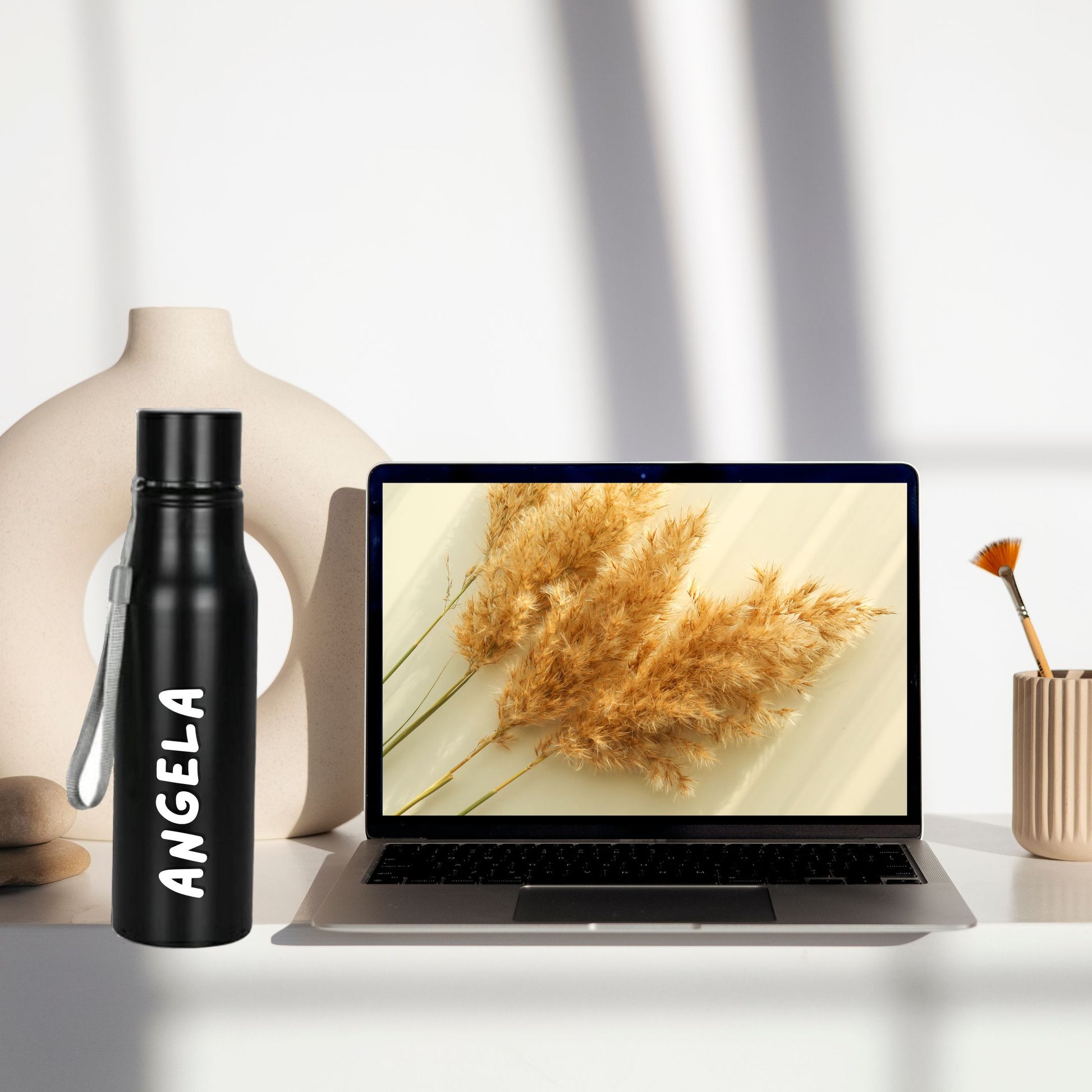 Personalized 750ml Matte Black Sleek Steel Bottle Eco Friendly